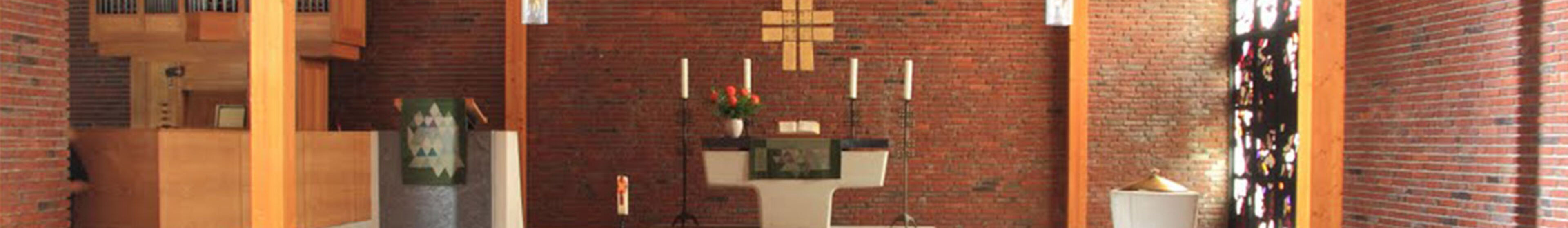 Der modern gestaltete Innenraum gewinnt durch seine Auskleidung mit rotem Backstein eine warme Atmosphäre. Bemerkenswert ist ein Glasfenster von Hagen Westphal, dass sich als Pfingstdarstellung deuten lässt.