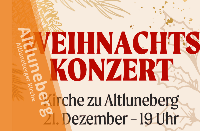 Am 21. Dezember 2025 findet um 19 Uhr in der Altluneberger Kirche ein Weihnachtskonzert mit Simon und Kathrin Bellett, Gina und Josefine Hopfenziz, Peter Becker und Guido tum Suden statt. Der ...