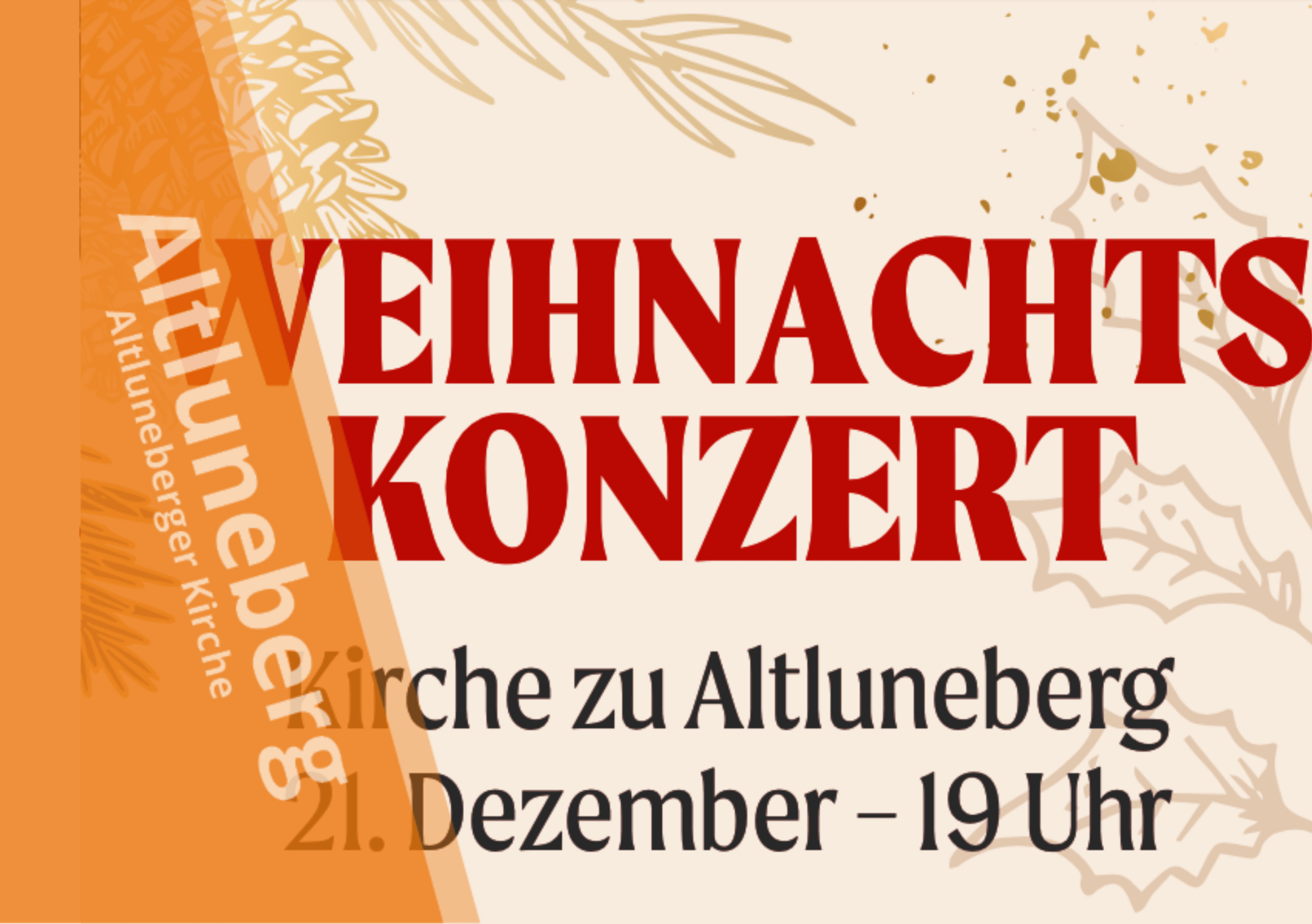 Am 21. Dezember 2025 findet um 19 Uhr in der Altluneberger Kirche ein Weihnachtskonzert mit Simon und Kathrin Bellett, Gina und Josefine Hopfenziz, Peter Becker und Guido tum Suden statt.