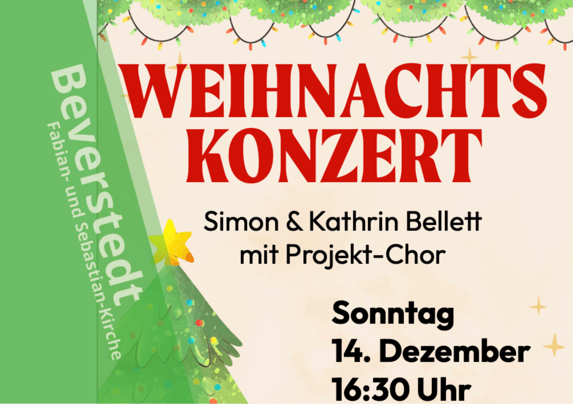 Am 14. Dezember findet in der Beverstedter Kirche ein Weihnachtskonzert mit Simon und Kathrin Bellett und ihrem Projekt-Chor statt.