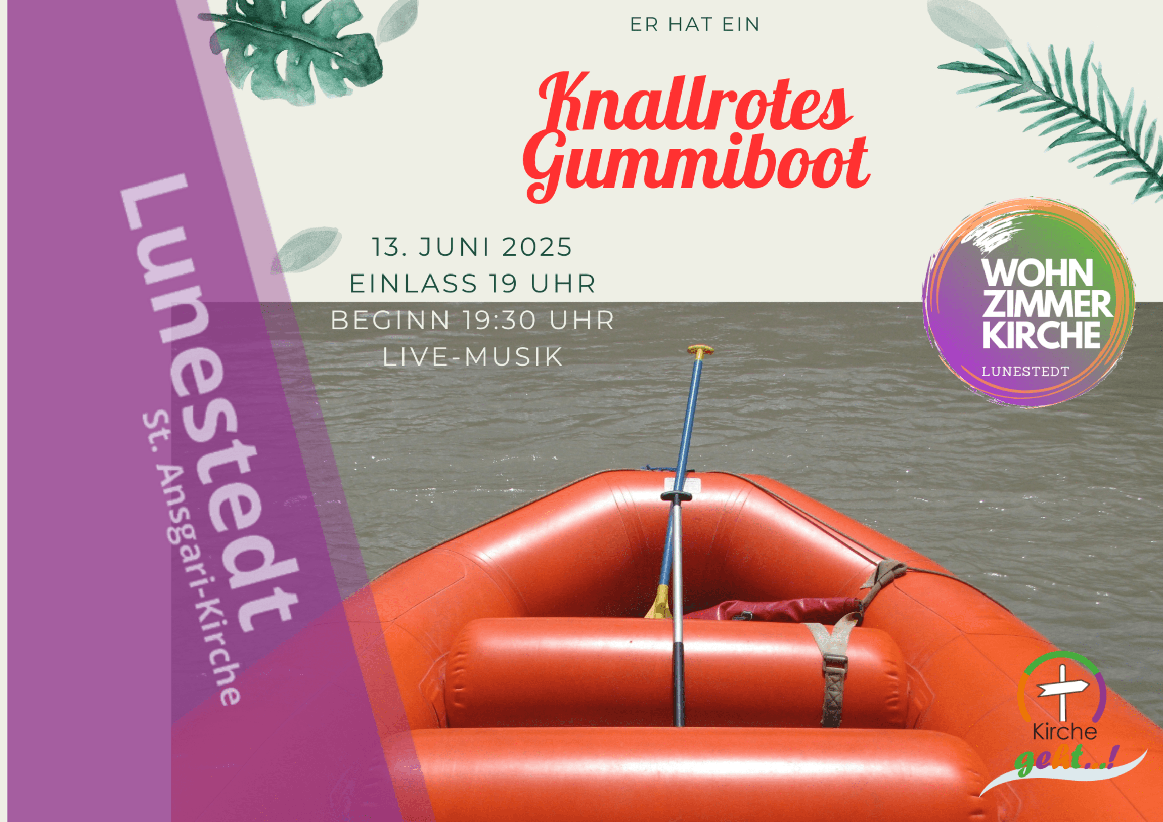 Dieses Mal geht es um das knallrote Gummiboot. Und wo könnte man besser ein knallrotes Gummiboot aufstellen, als VOR der Kirche?