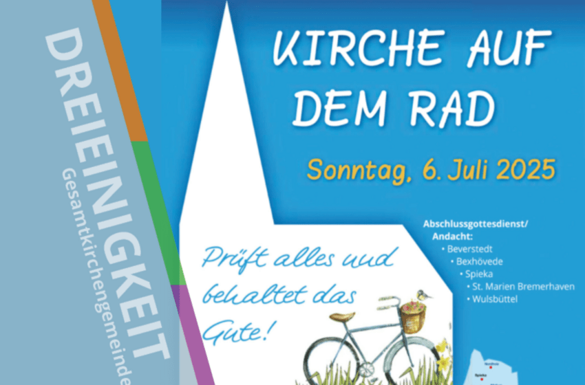 Kirche geht...radelnd auf Entdeckungstour durch unsere Gesamtkirchengemeinde. Das nächste Mal am 19. September. Startpunkt ist um 16 Uhr der Parplatz am Silbersee in Wehdel. Von dort aus wird ...